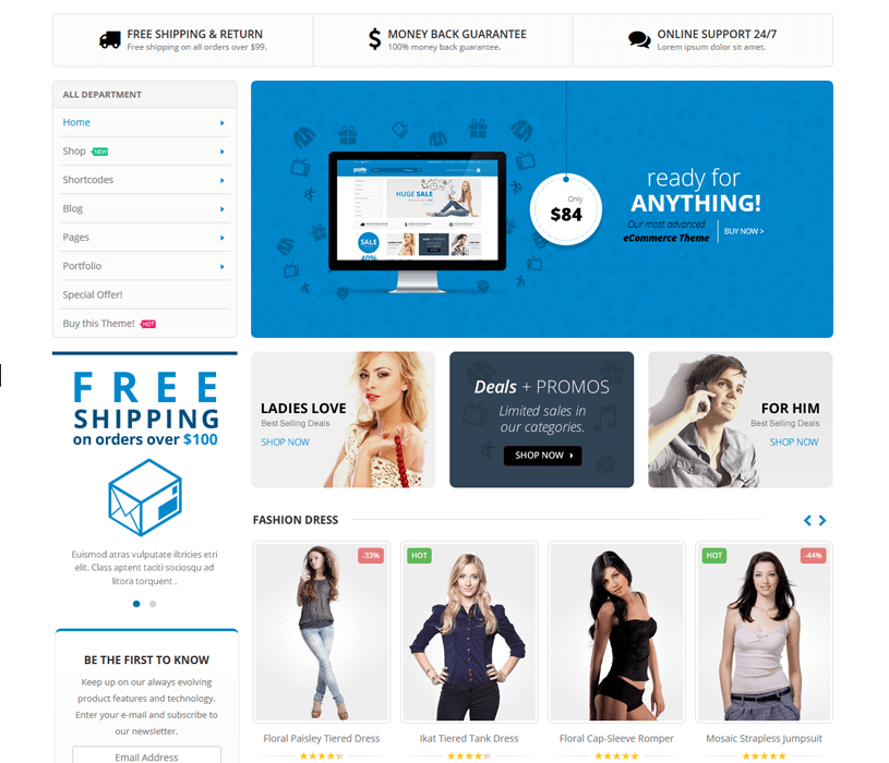 Porto Comes with full WooCommerce integration and